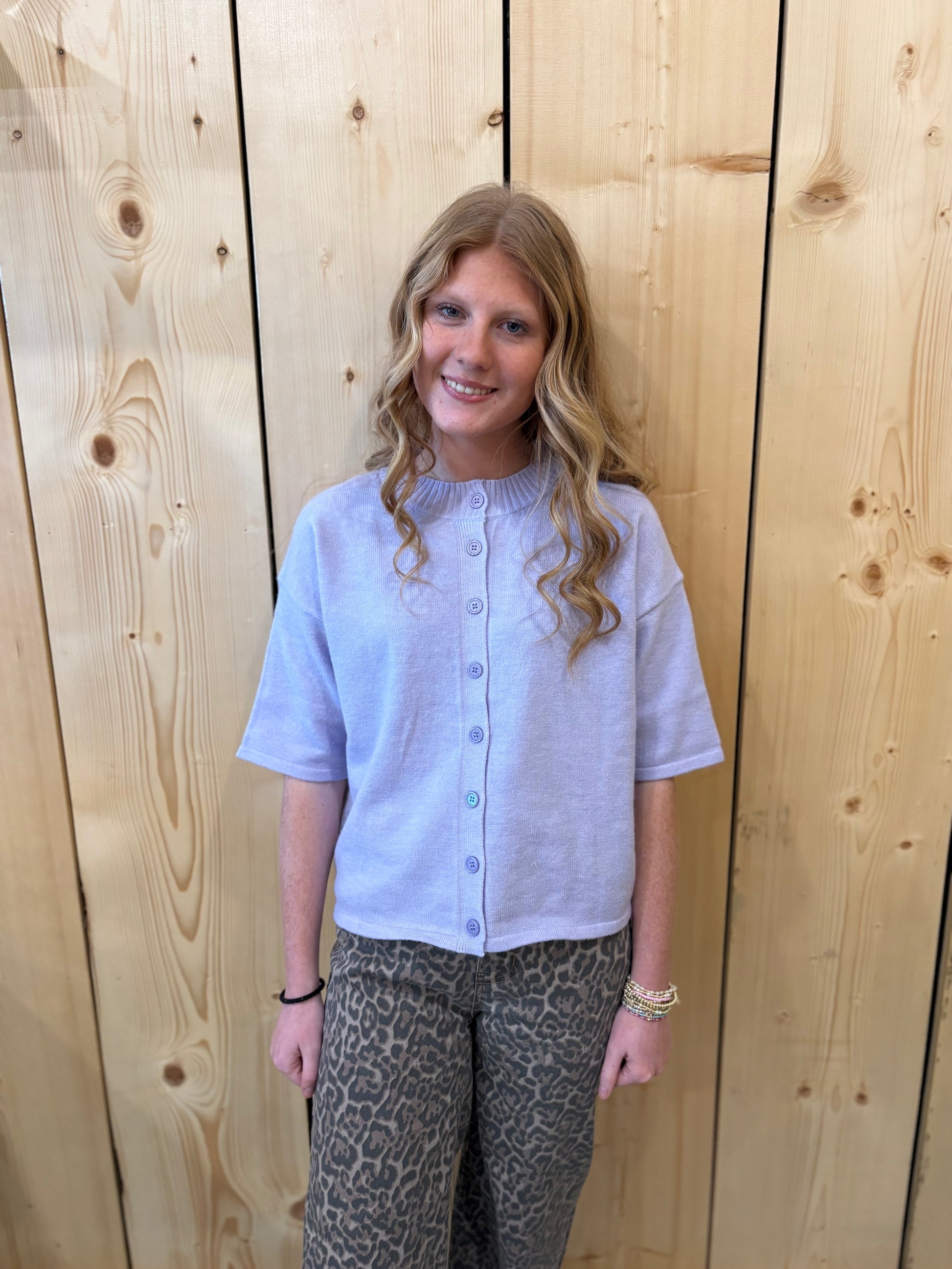 Lavender Button Up Short Sleeve Sweater